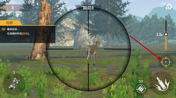 点击右侧的瞄准镜按钮可以打开瞄准镜。