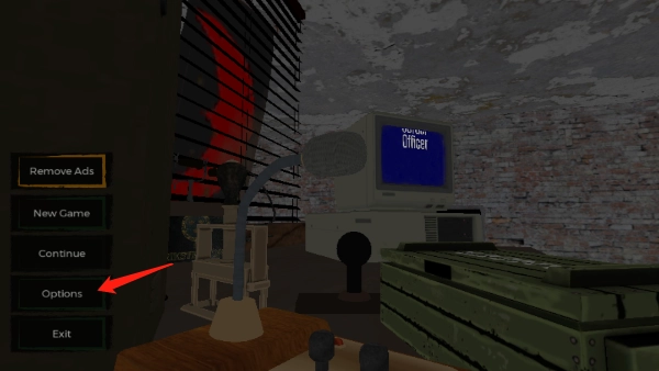 首先打开在本站下载好的游戏,进入主页面后,点击倒数第二行的“设置”选项即可,该选项对应的英文是“options”,这就是游戏的设置入口。