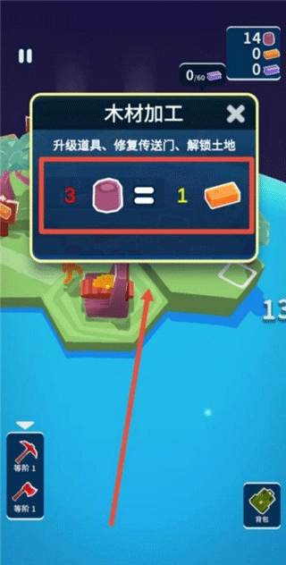 使用木材解锁区域,从而获取更高级材料的合成方法或获取途径。