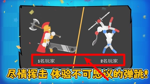 模式选择界面:支持单人挑战与双人对战两种玩法,玩家可自由切换模式,随时开启精彩的乱斗对局。
