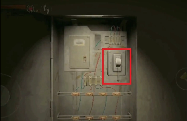 使用背包里的保险丝修复电箱,让供电恢复正常(操作方式:用保险丝点击图中标注的位置)