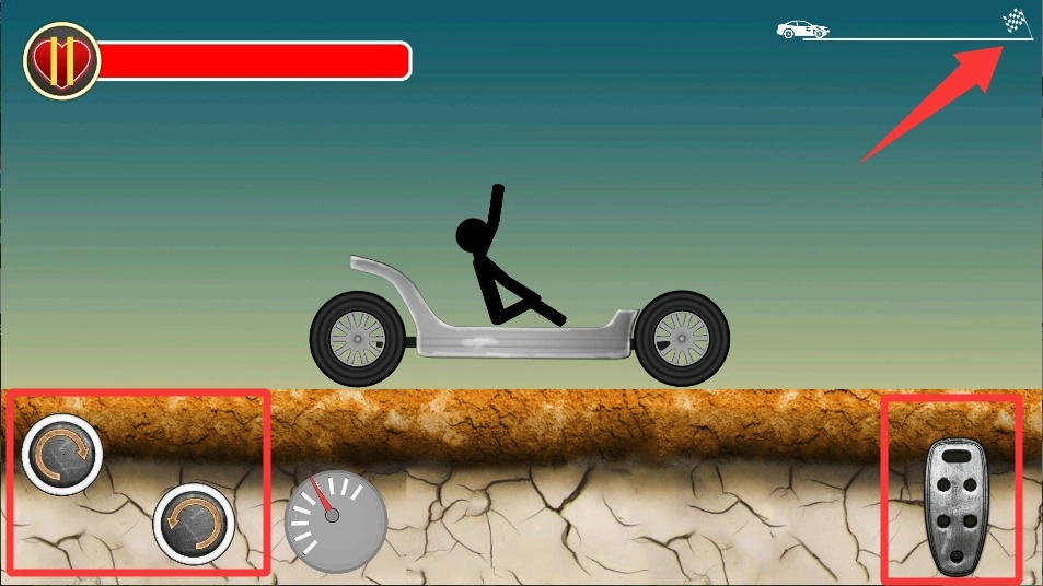 双键操控。左手操控方向键来调整车身角度,右手长按加速键以维持车速,通过细微调整保持直线行驶,直至冲过终点线。