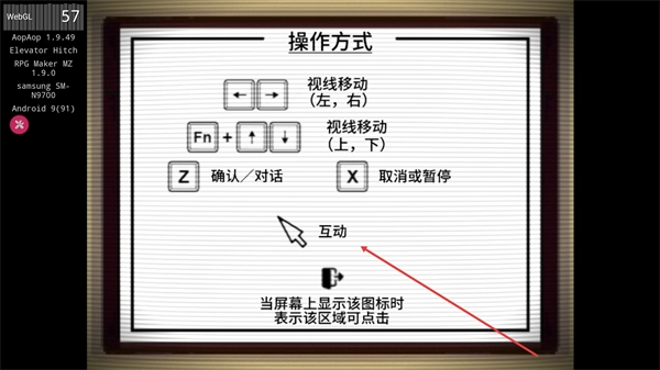 当进入电梯场景后,按照界面上的提示操作,按下Z键来和场景中的元素进行互动,这样就能推动游戏进程的发展。