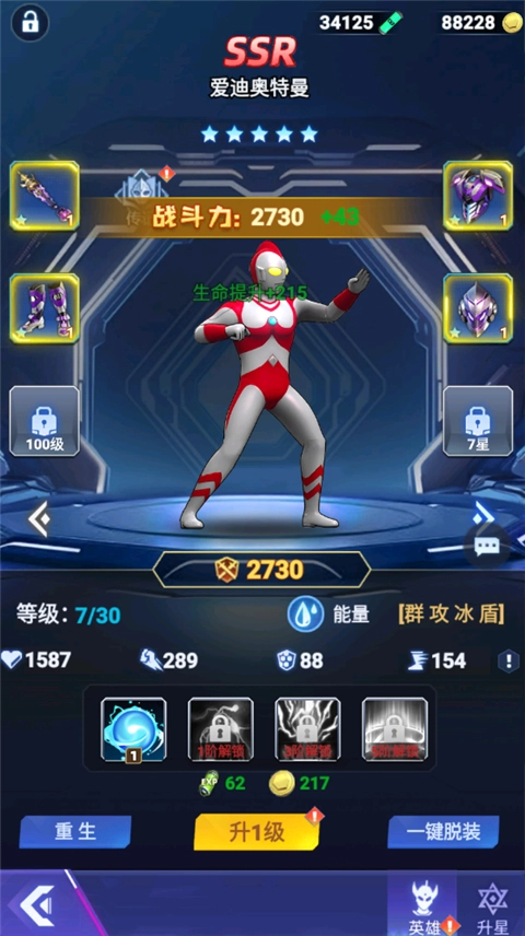 4、通过资源提升奥特曼等级