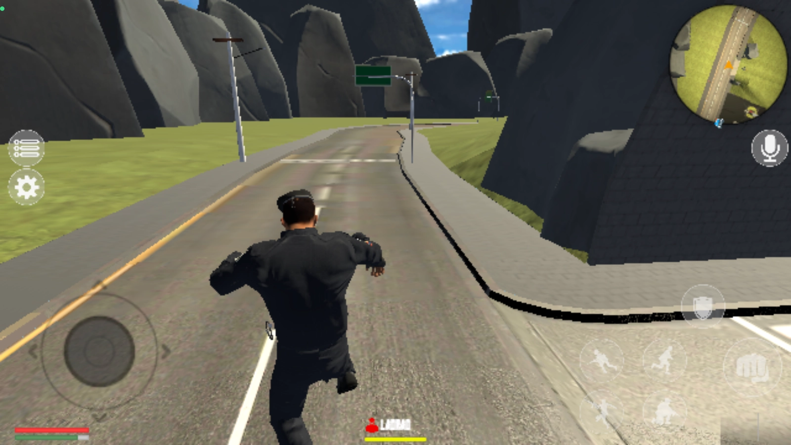 点击蹲伏按键能够完成站立与蹲姿之间的切换;持续按住界面左上角和右上角的行动键,会分别触发疾跑模式或者隐蔽潜行状态。