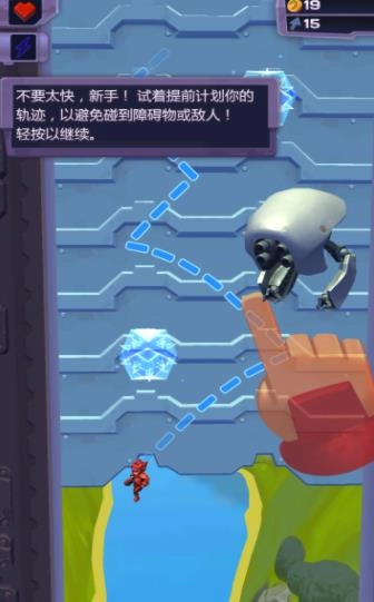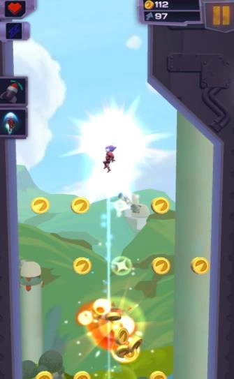 游戏的基础操作相当简单,只需点击屏幕,主角便会借助火箭背包朝斜向喷射。想必有人会好奇为何非得是斜着喷,这个问题我同样很想弄明白。不过正因为是斜向喷射,若想让主角上升,就得持续点击屏幕,使其呈闪电状攀升;一旦停止点击,主角在喷射结束后就会沿着一条简单的抛物线向下坠落。