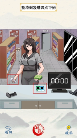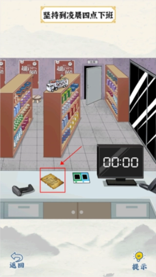 在“坚持到凌晨四点下班”的关卡场景里,要按照箭头所指的方向留意柜台上的物品(像红包这类),或许需要对这些物品执行互动操作。