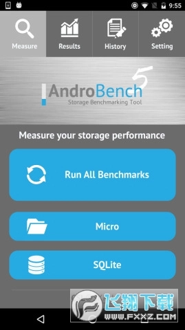androbench是一款用于测试Android设备存储性能的应用程序基准工具。目前我们提供微基准测试函数、SQLite基准测试以及免费的宏观基准测试功能,您可以随时使用它来检测安卓设备的内部或外部存储性能。