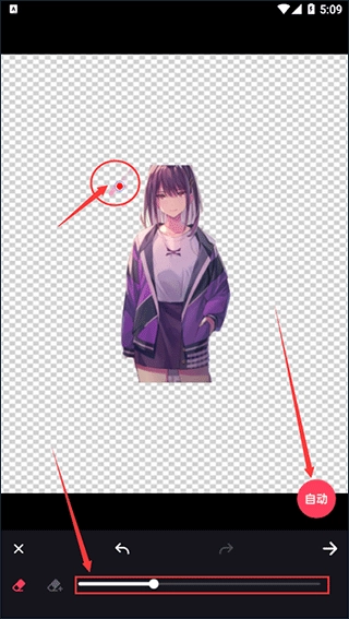 点击“自动”按钮后,系统会在数秒内完成抠图,若有残留区域,可使用橡皮擦工具手动进行修正。