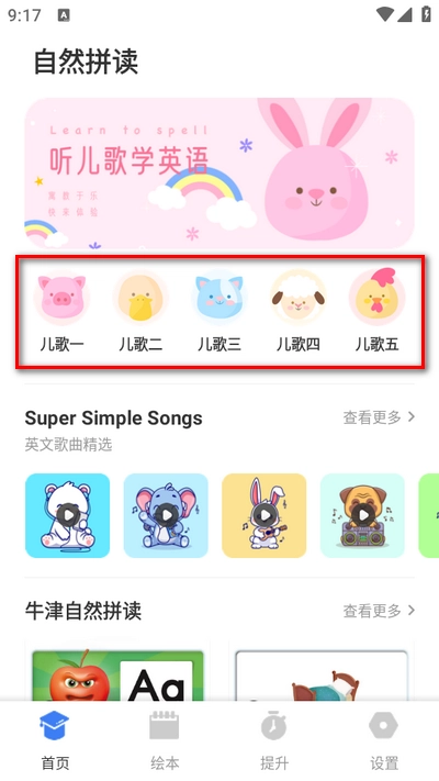 平台还收录了英文儿歌,学生可以借助听这些儿歌来学习英语,从而增添语言学习的趣味性,提升学习效果。