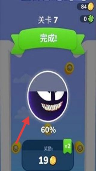 完成第7关后,可领取奖励(奖励内容:19枚金币,以及2倍倍数加成)。