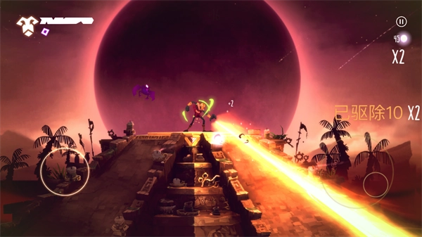 角色释放的光线能穿透低等级杂兵,可一次性解决多个敌人;但到了中后期,高级敌人会阻挡光线,处理起来难度增加。这时建议用咒术攻击辅助清除近身敌人,不然容易因受伤中断连击,进而影响最终得分。