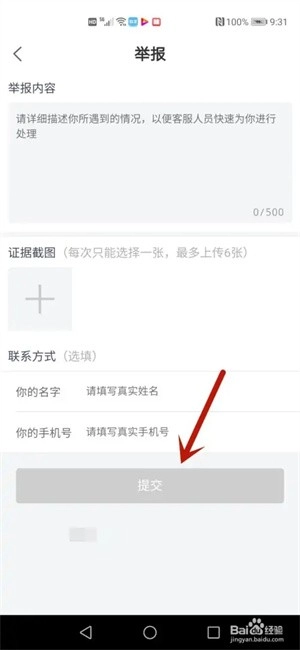最后输入举报内容,点击提交按钮,就可以举报别人。