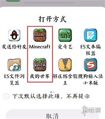 部分手机系统自带的浏览器能够直接选择开启MOD模组运行环境,这时候,选择“我的世界”这款游戏就可以了。