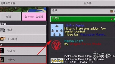 回到“我的世界”游戏,新建一个世界,在世界创建的设置选项里,你能在“资源包”板块中找到并选中你之前准备好的Mod模组。