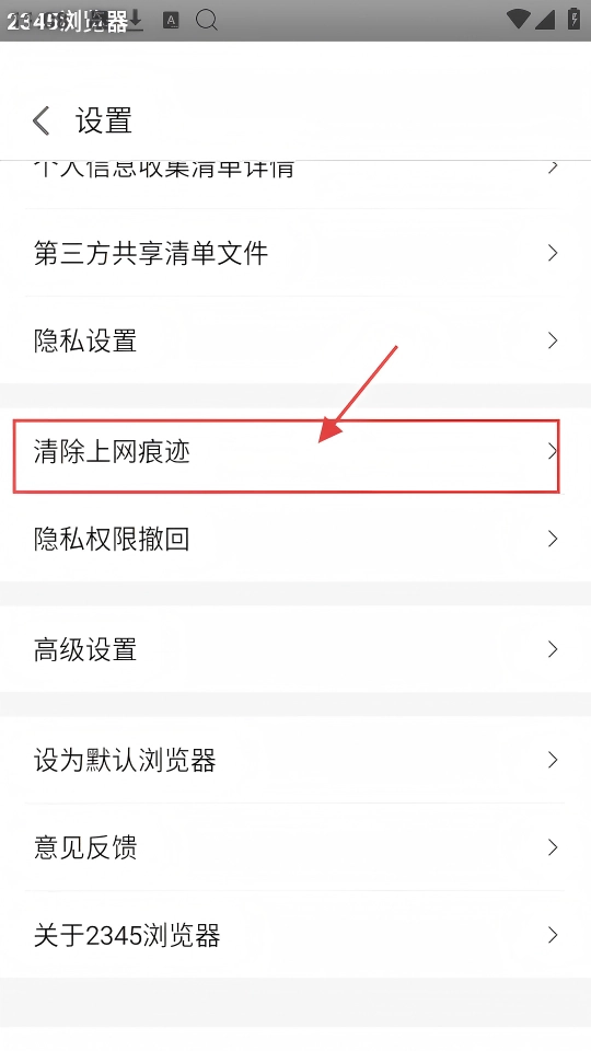 在设置页面里,找到并点击【清除上网痕迹】选项,就能进入对应的界面,对上网痕迹进行管理了。