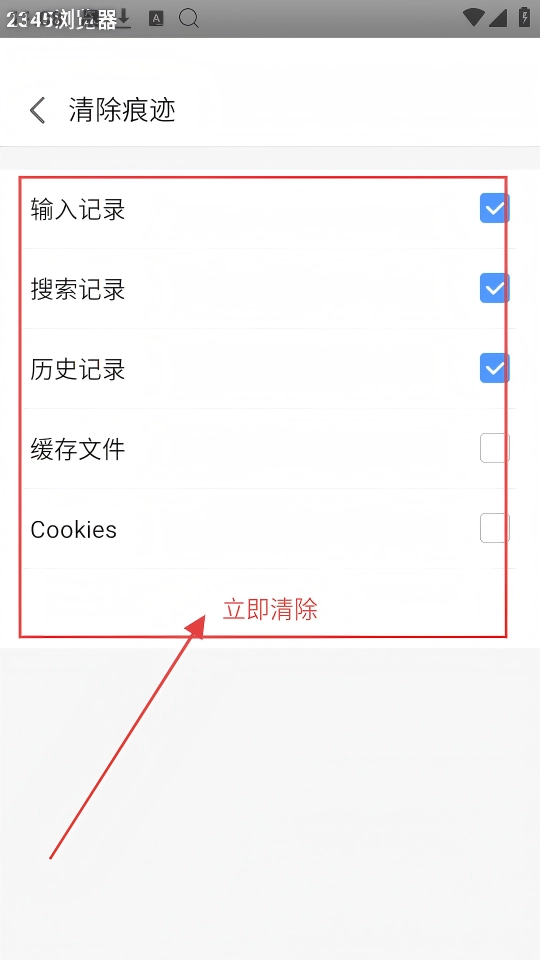 进入清除痕迹的界面后,你可以选择输入记录、搜索记录等需要清除的内容,然后点击【立即清除】按钮,这样就能完成清除操作了。