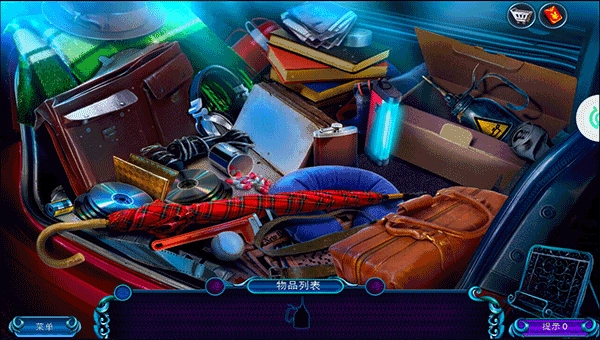 后备箱里堆放着不少物品,玩家需要从中找出手套、灭火器、指纹、手电筒、文件夹、眼镜、油炸圈饼、放大镜、相机、腕表、绳子以及鬼魂物品。最快捷的方式就是随意点击——由于游戏没有错误操作的惩罚机制,这种看似盲目的方法反而能让你最快完成任务。