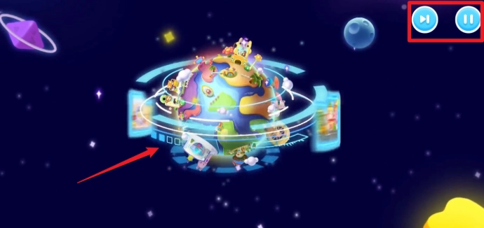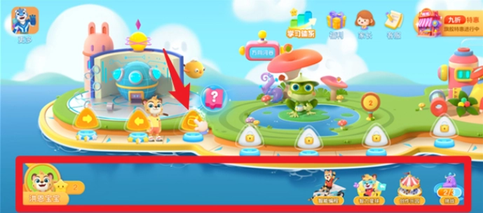 进入洪恩智能编程后,点击界面中的角色或任务点,即可开启学习关卡。