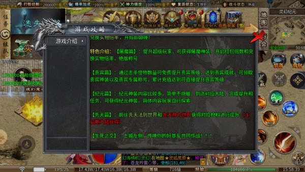 贵宾篇章:玩家可通过累积击杀怪物的数量免费提升贵宾等级,达成相应贵宾成就后,能领取专属的贵宾神装与尊贵称号;此外,若累计充值金额达到指定要求,也可直接提升贵宾等级。