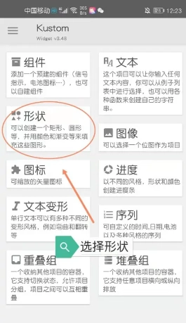 向左滑动列表,找到kwgt专属图标并轻触选中。