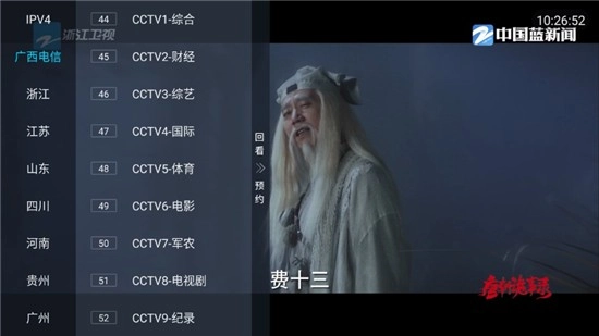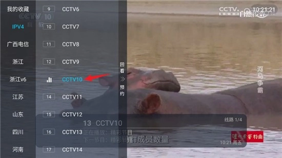 点击屏幕任意位置,左侧栏中有很多的电视频道。