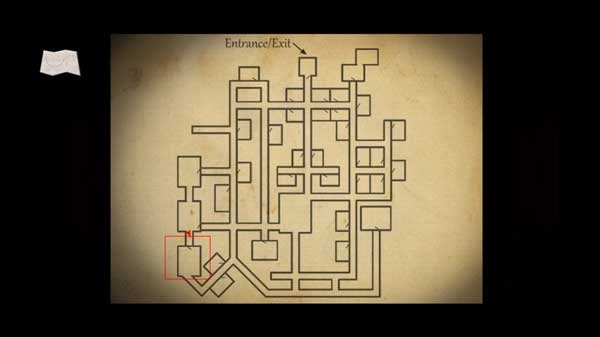 玩家能够通过打开地图来查看自身所处的位置,地图上红色箭头所指的方向即为你当前的位置,而标注有EXIT字样的地方就是出口。