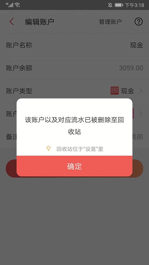 提示“该账号及其对应的流水已被删除至回收站”,账户删除操作已完成。