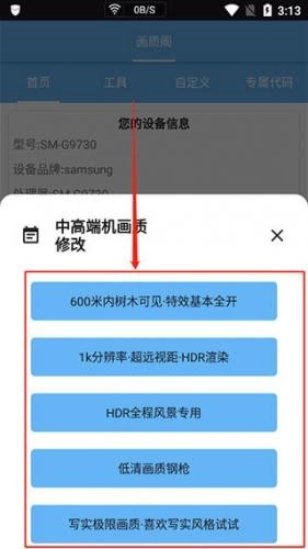 接着选择后会弹出可修改的选项,点击对应的选项就能进行修改,这里推荐低画质钢枪,体验非常畅快。