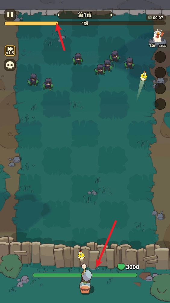 一开始会有一个角色发起攻击,消灭僵尸就能获取经验提升等级。