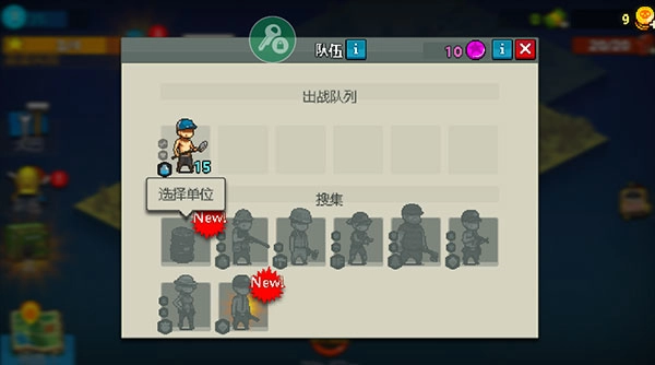 在战斗过程中,得积攒足够的能量值才能派出士兵,士兵越强,所需的能量值就越高。这些能量值会显示在屏幕的最左上角,它会随着时间推移匀速上升,偶尔击败僵尸还能获得能量包掉落。屏幕正上方的中央位置有3种增益道具,里面的蓝色能量桶可以快速补充能量。