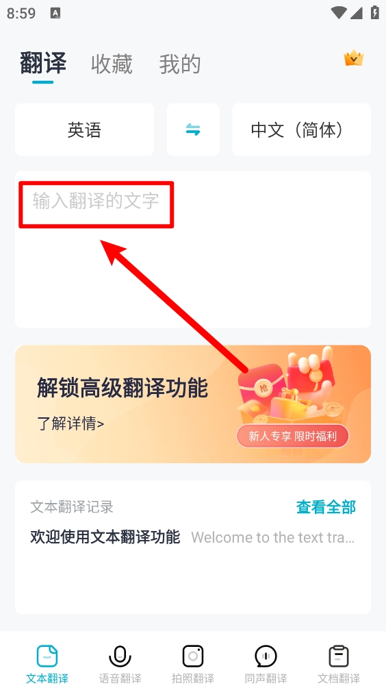 切换至收藏板块,就可以查看所收藏的翻译内容。
