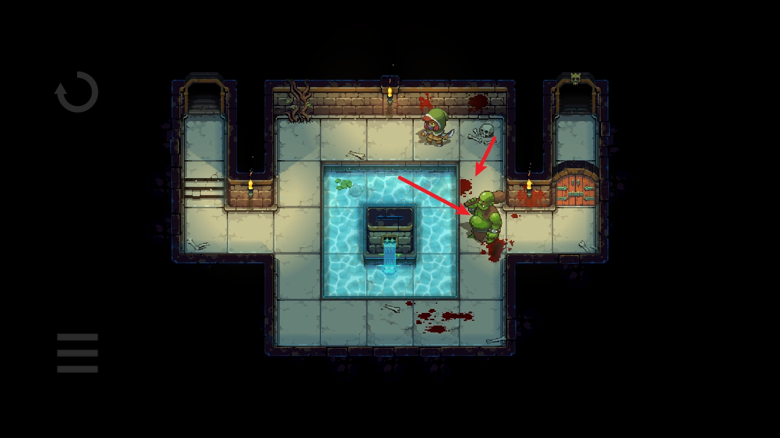 然后绕着水池把它引开,注意和它保持不超过两格的距离,不然它会自己回去。引开后赶紧跑到门口,砸开门就能去往下一层了。