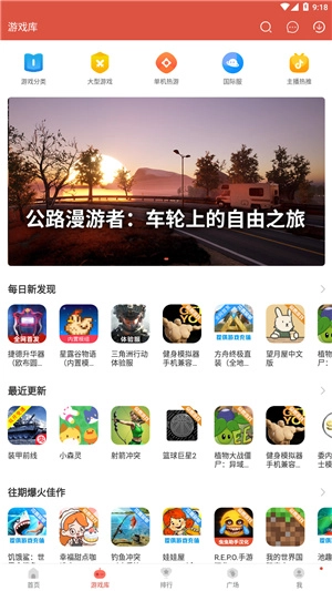 打开虫虫助手后,不仅能浏览到最新的热门内容,还能按照大型游戏、模拟器游戏等不同类别进行筛选查看。