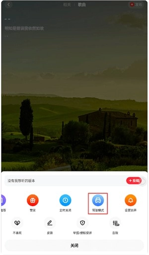 在歌曲页面点击“更多”选项,将音乐设置为“驾驶模式”,随后点击左上角的“蓝牙”图标。