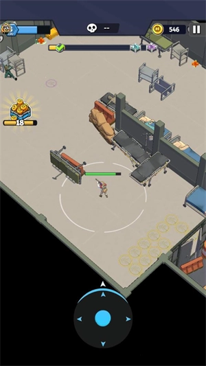进入关卡后,角色会自动攻击出现的外星怪物,击败怪物后会掉落晶石与金币。