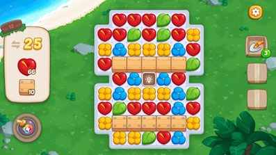 游戏前期可以借助左侧的消除元素来生成火箭或炸弹,以此清除钻石上的藤蔓(参考上图);当两颗钻石的藤蔓都被清理干净后,这一关卡基本就顺利通过了。