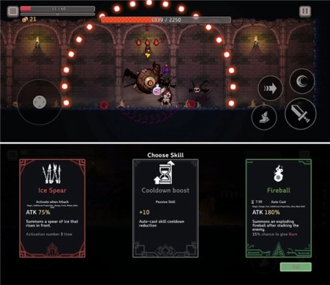 通关时你会随机得到三项技能,部分技能可能会自动生效,特定角色的技能则能随时使用,巧妙搭配这些技能与地牢技能,打造出华丽的战斗组合。