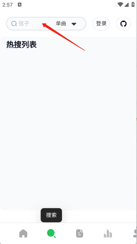支持关键词搜索功能,可选择单曲、专辑、歌单等不同类别进行关键词检索。
