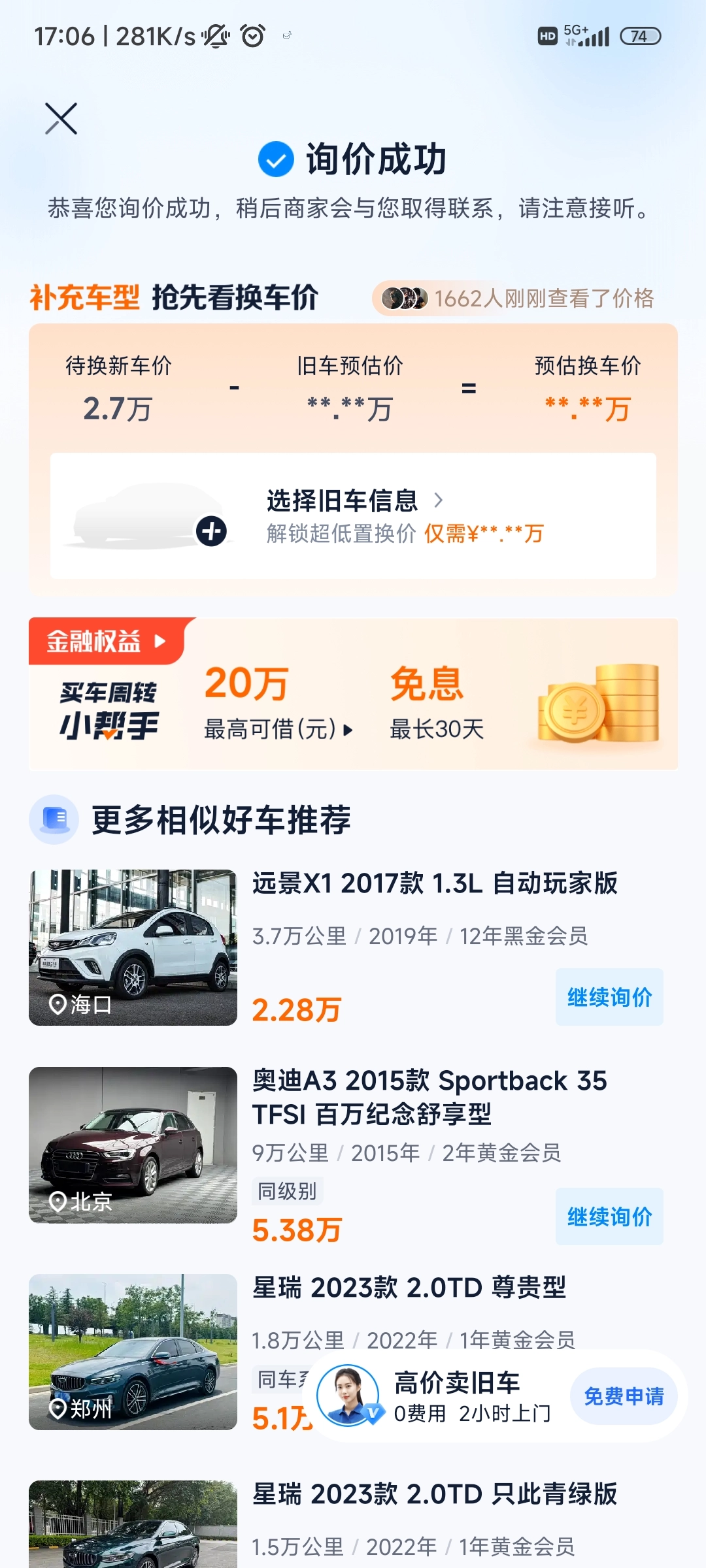【1 秒快速估值,助您高价卖车】