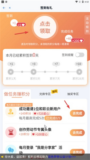 2.进入签到页面之后,我们可以通过签到,各种任务来获取积分