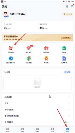 中国移动云盘账号注册方式有两种:
