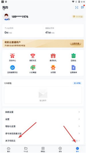 1.首先我们需要在我的页面,点击关于和彩云