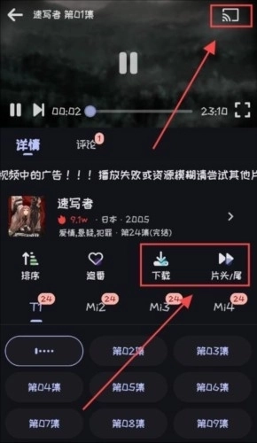 2、点进动漫介绍页面,往下滑,可以看到不同线路和集数,选择喜欢的观看