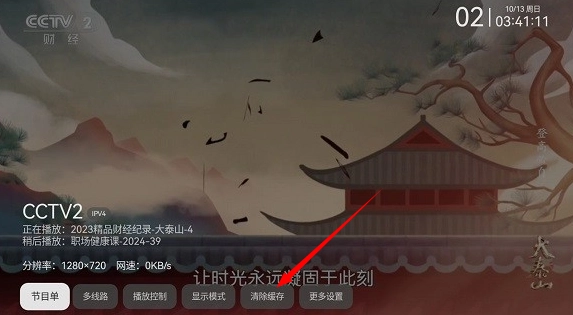 2.唤醒菜单栏,导航栏选择“央视专区”或分类标签,浏览节目单或搜索频道