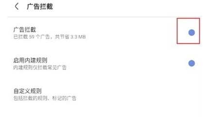 5、进入广告拦截界面,开启广告拦截后的功能选项就行。