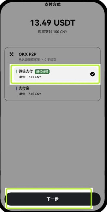 二、确认点击需要购买的数字资产-输入需要“购买的金额”-选择“支付方式”-点击下一步;