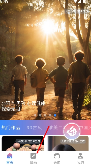 1、打开软件后,点击首页的“绘画”功能进入创作界面。