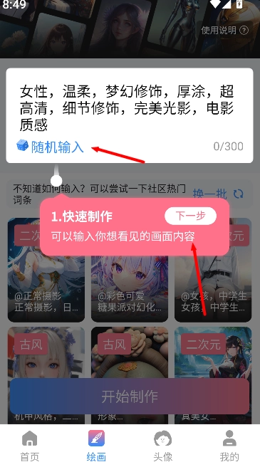 3、包含画廊浏览区,可查看历史作品并进行二次创作与调整。