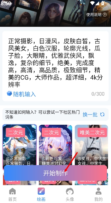 3、在确认内容无误后,点击“开始制作”按钮,此时系统会自动生成相应的画作,并呈现出最终结果。